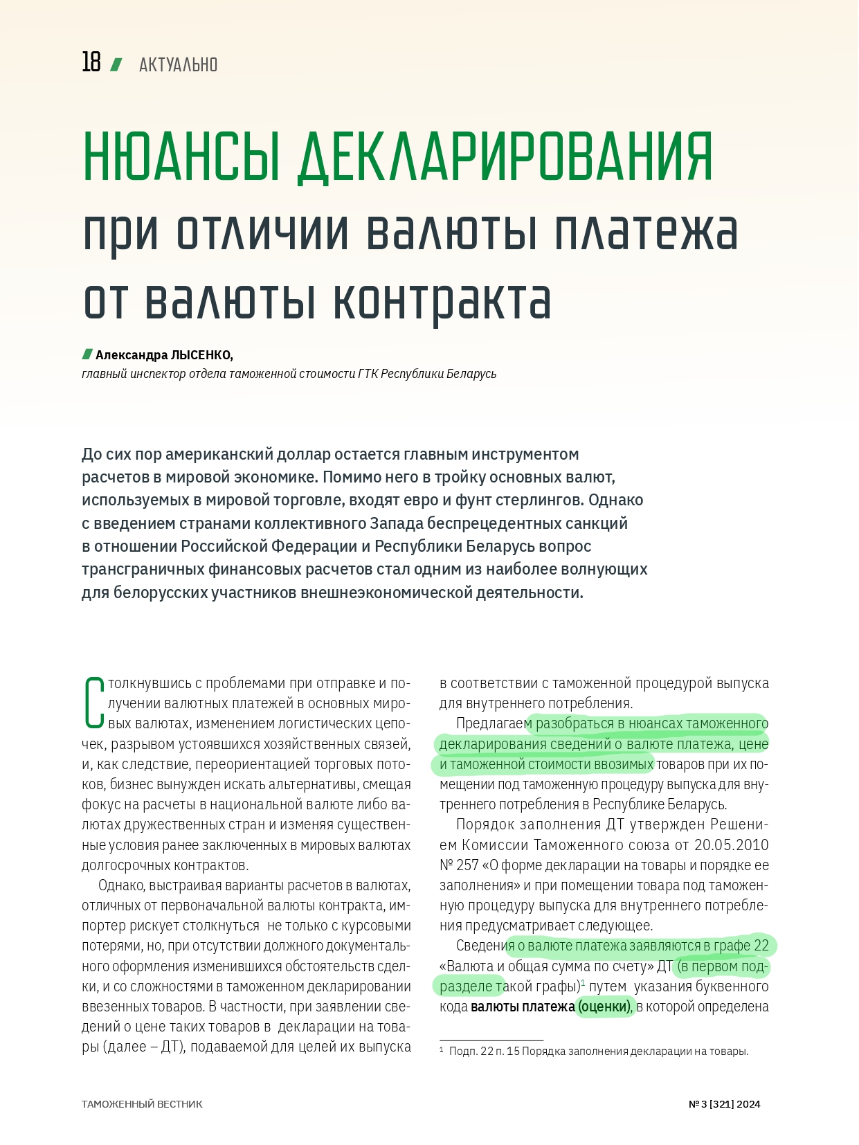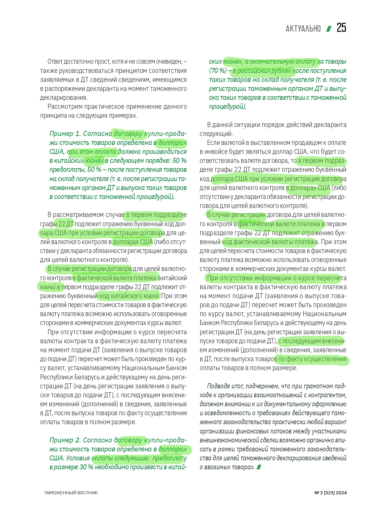 НЮАНСЫ ДЕКЛАРИРОВАНИЯ при отличии валюты платежа от валюты контракта