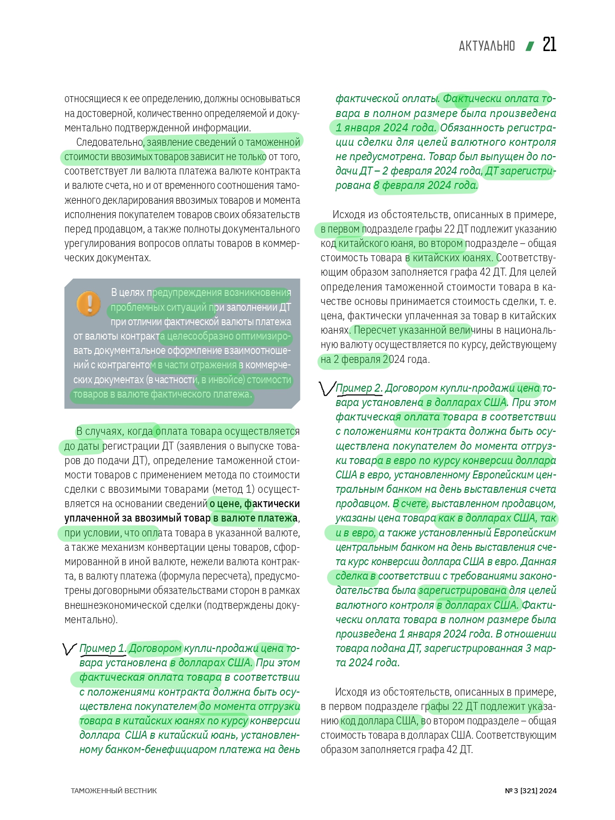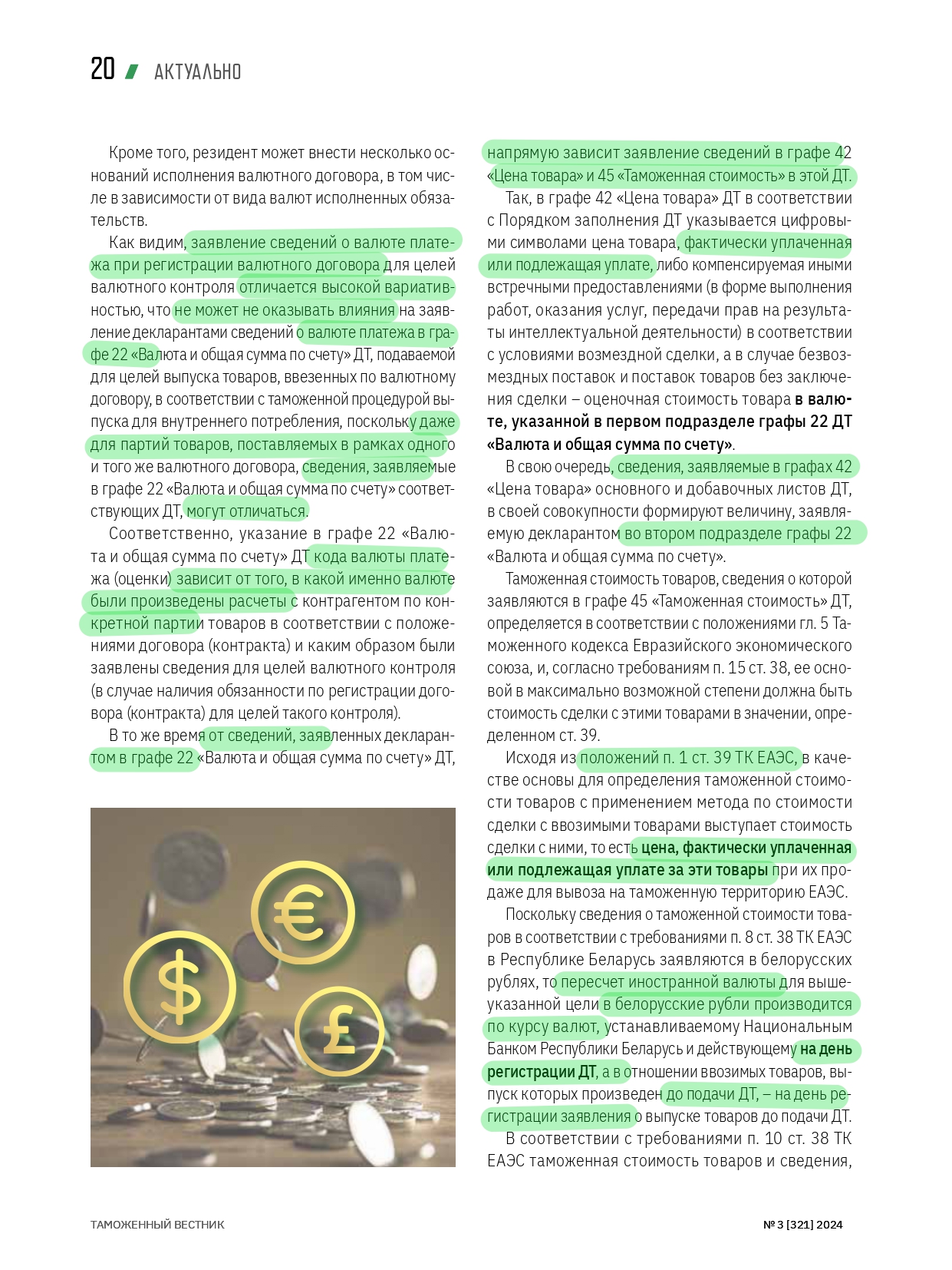 НЮАНСЫ ДЕКЛАРИРОВАНИЯ при отличии валюты платежа от валюты контракта
